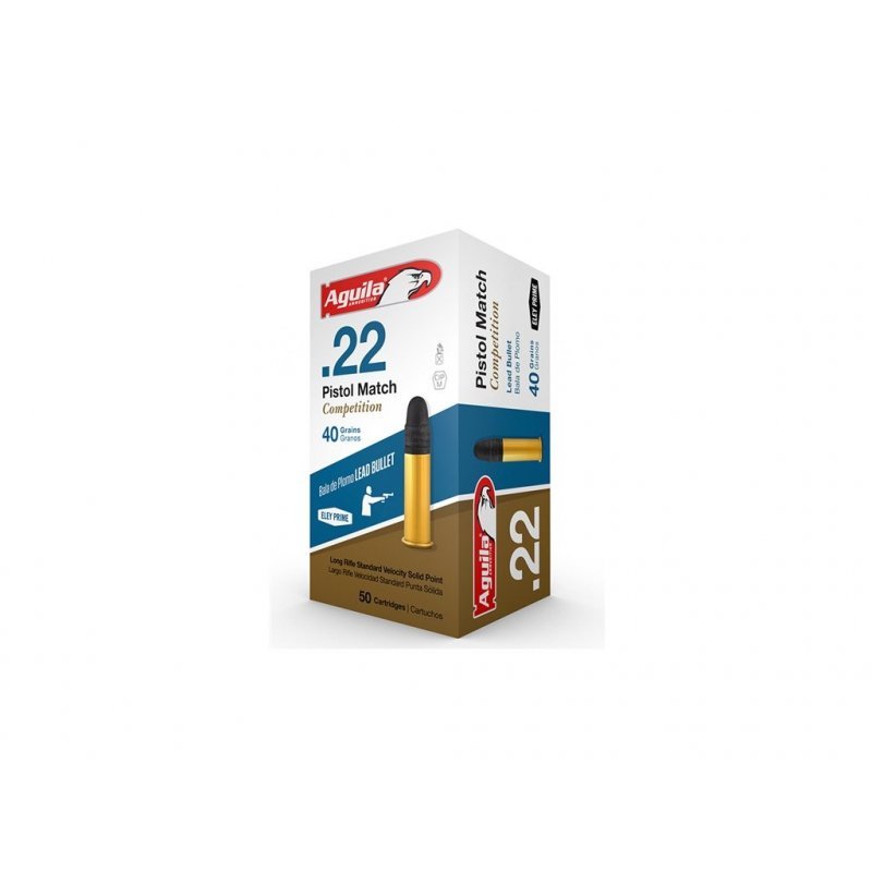 špičkové střelivo Aguila Pistol Match Competition, terčovou střelbu, V0 282 m/s, E0 103 J speciálně navrženo pro krátké zbraně